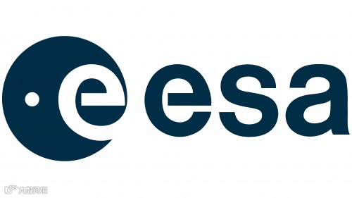 ESA 标志以深蓝色圆圈为基础,搭配小圆点与“e”字母。