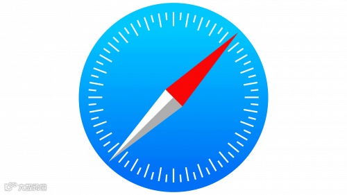 Safari 的指南针形标志结合对角箭头,渐变蓝色彰显现代感。