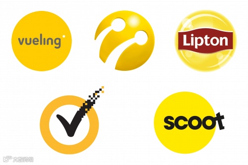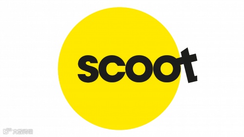 Scoot 航空标志以柠檬黄色圆圈承载品牌名称,简约时尚且富有动感。