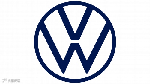 大众标志中的蓝色圆圈与字母“V”“W”结合,寓意和谐统一。