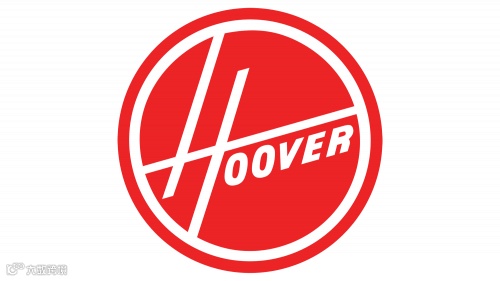 胡佛家电标志采用鲜红色圆圈设计,突出几何无衬线字体的现代感。