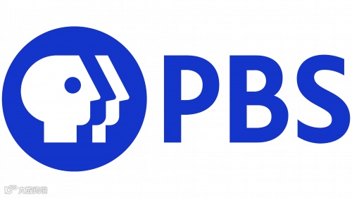 PBS 标志以亮蓝色圆圈为核心,中央白色图案形似人头。