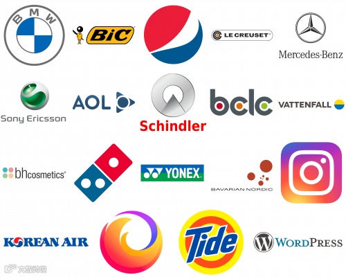 GE 使用蓝色圆圈,中间为艺术化的“H”,代表电流与科技。
