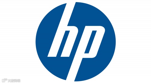 HP 标志采用深蓝色圆形与斜线字母设计,展现科技与创新。