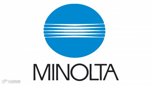 美能达的蓝色圆圈代表地球,白线象征光束,体现品牌国际声誉。