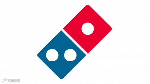 达美乐比萨标志以多米诺骨牌形式呈现,圆点代表品牌前三家门店。