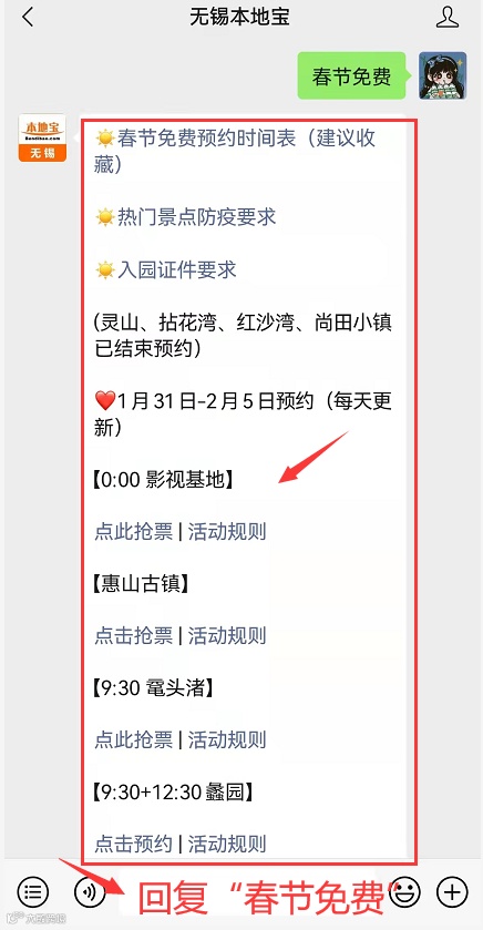 回复【春节免费】获无锡春节免费活动汇总、免费门票预约入口等