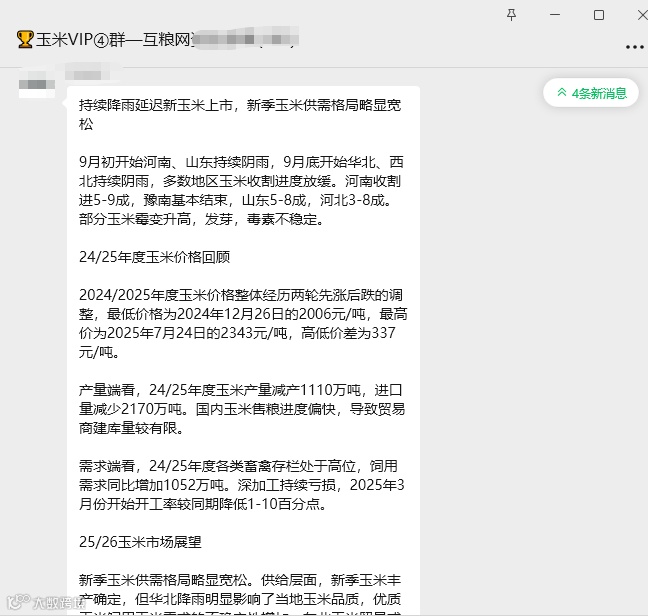 山东香驰健源生物科技有限公司:自2025年10月15日7:00 玉米收购价格执行1.11元/斤,财务凭票付款,其他收购标准不变