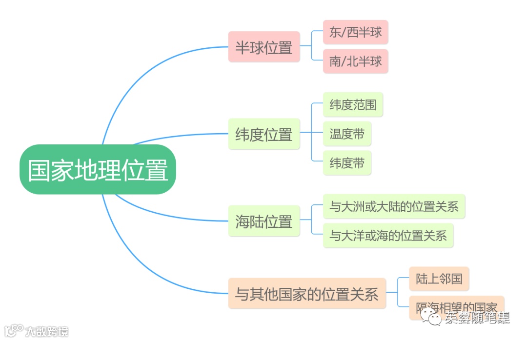 老师要引导学生依据思维导图说出相关国家的地理位置