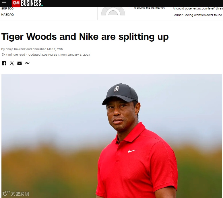 今年1月,耐克没有和老虎伍兹续约,终止了双方持续27年的合同。