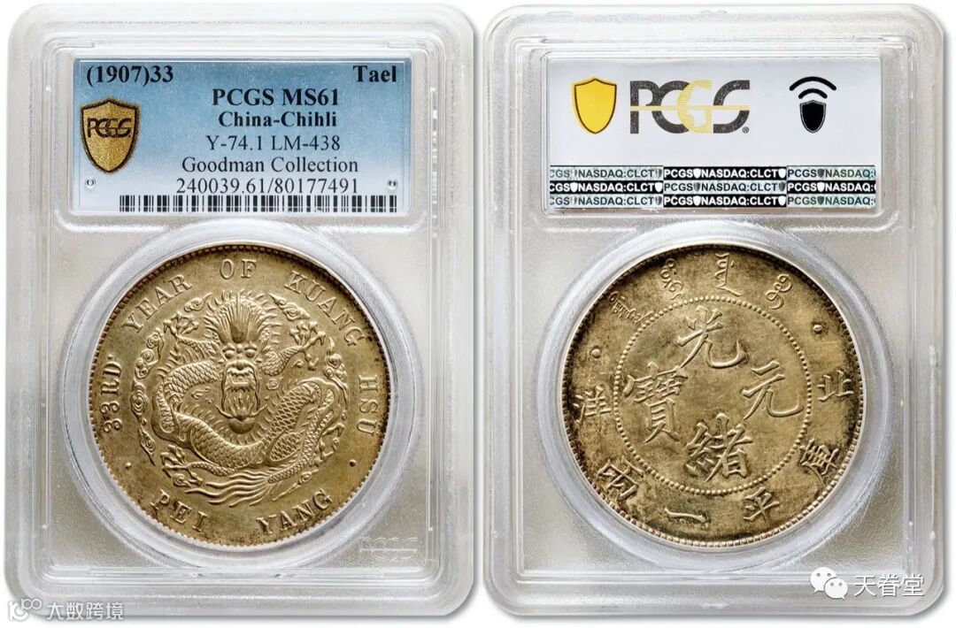 北洋光绪元宝33年库平一两直线 PCGS MS61 上海泓盛2070万元