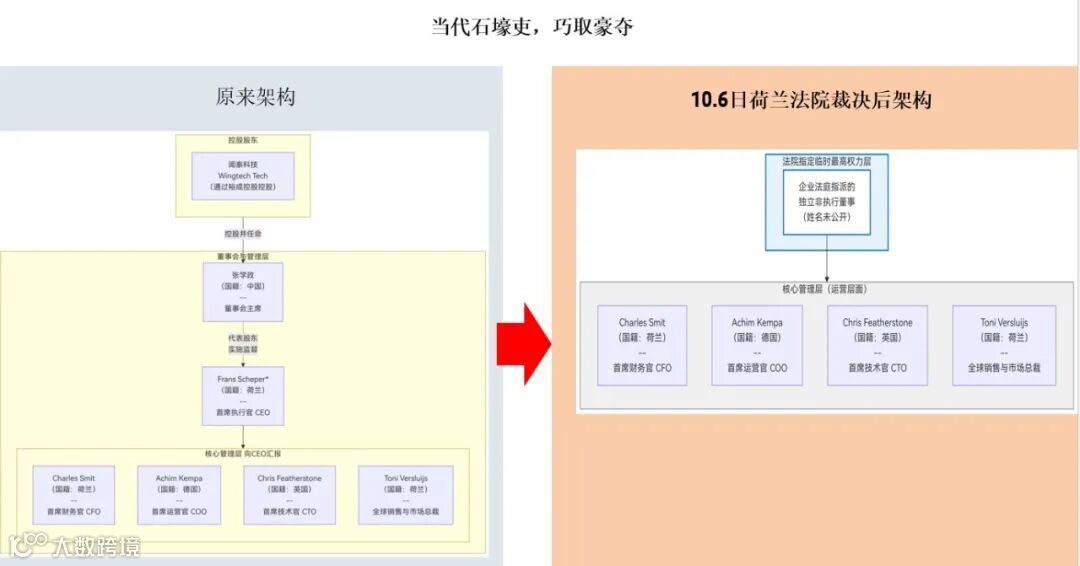 2、荷兰时间2025 年10 月1 日,安世半导体控股以及安世半导体(荷兰注册主体)法定董事兼首席法务官Ruben Lichtenberg(CLO,荷兰籍)在获得其他两位高管,即首席财务官Stefan Tilger(CFO,德国籍)以及首席运营官Achim Kempe(COO,德国籍)的支持下,代表安世半导体以及安世半导体控股向企业法庭提交了启动对公司调查与采取临时措施的紧急请求。同日,企业法庭在未庭审的情况下直接即时生效了几项紧急措施,包括暂停张学政担任安世半导体控股公司执行董事及安世半导体公司非执行董事职务,暂停执行安世半导体董事会规则第3条之效力(即作为CEO 的职务和职权)以及自当日起,将裕成控股有限公司(闻泰公司注册于中国香港的全资子公司,系安世半导体控股的唯一股东,以下简称“裕成控股”)持有的安世半导体控股的股份以管理权形式托管给独立第三方管理,上述措施持续至2025 年10 月6 日口头听证后对即时措施申请作出裁决为止。