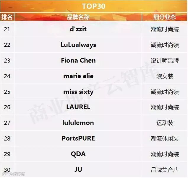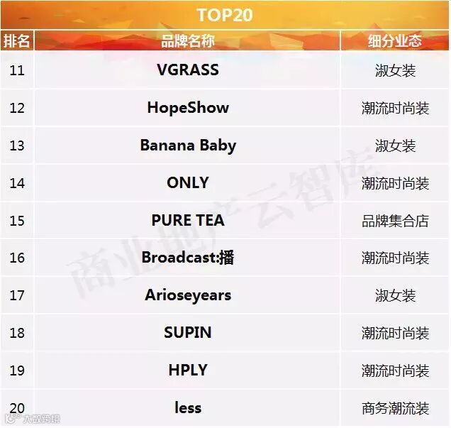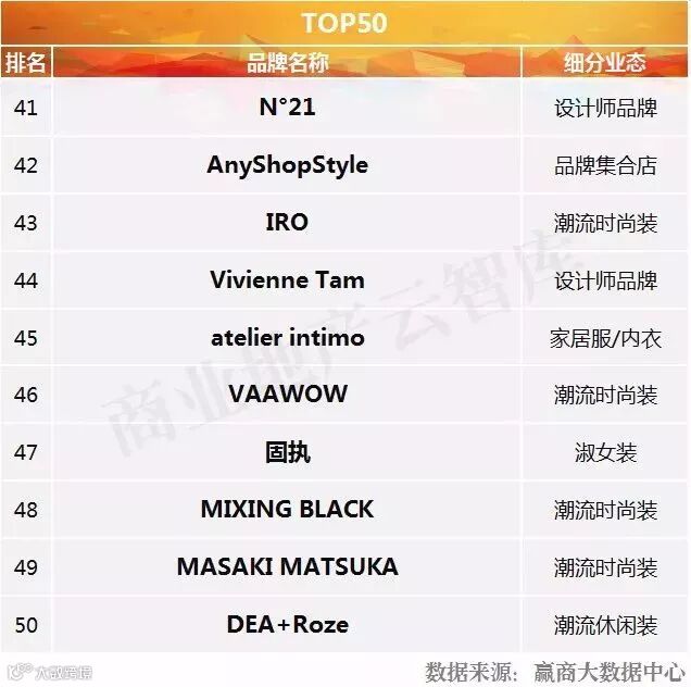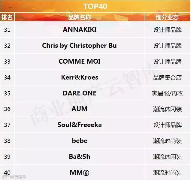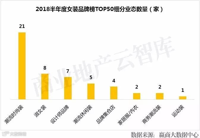 到这里呢,2018半年度购物中心关注女装品牌榜TOP50算是盘点完了。其中: