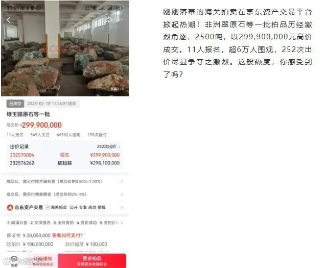案例警示:2025年2月18日,厦门某公司因进口“非洲翠”未规范申报,货物被海关依法没收并进行拍卖,最终竟拍出2.999亿元的“天价”,一度引发行业热议。这个极端案例,无疑为所有从业者敲响了警钟:合规之路,不容半步差池。