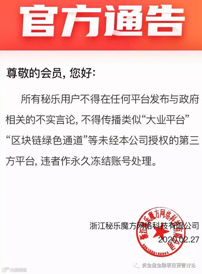 又以《秘乐魔方》的官方形式通告,