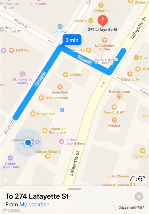 这里附上美国3个实体店铺的地址,Supreme纽约Lafayette店地址,274 Lafayette Street NYC 10012、Supreme纽约Brooklyn店地址,152 Grand Street Brooklyn, NY 11249、Supreme洛杉矶店地址,439 North Fairfax Ave LA 90036