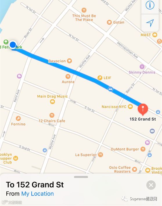 本周发售Supreme x TNF联名,等到周四发售当天,我们纽约的2个地点排队地点如下方地图指示,