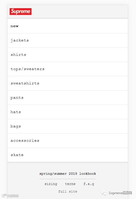 Supreme官网有且仅有一个网站:www.supremenewyork.com,打开后成下图模样,