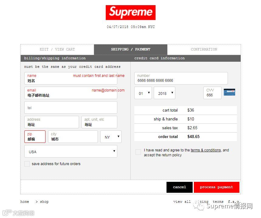 3、Supreme官网能不能直接寄到中国,我这里再回答一次:不能。并且不支持银联信用卡。