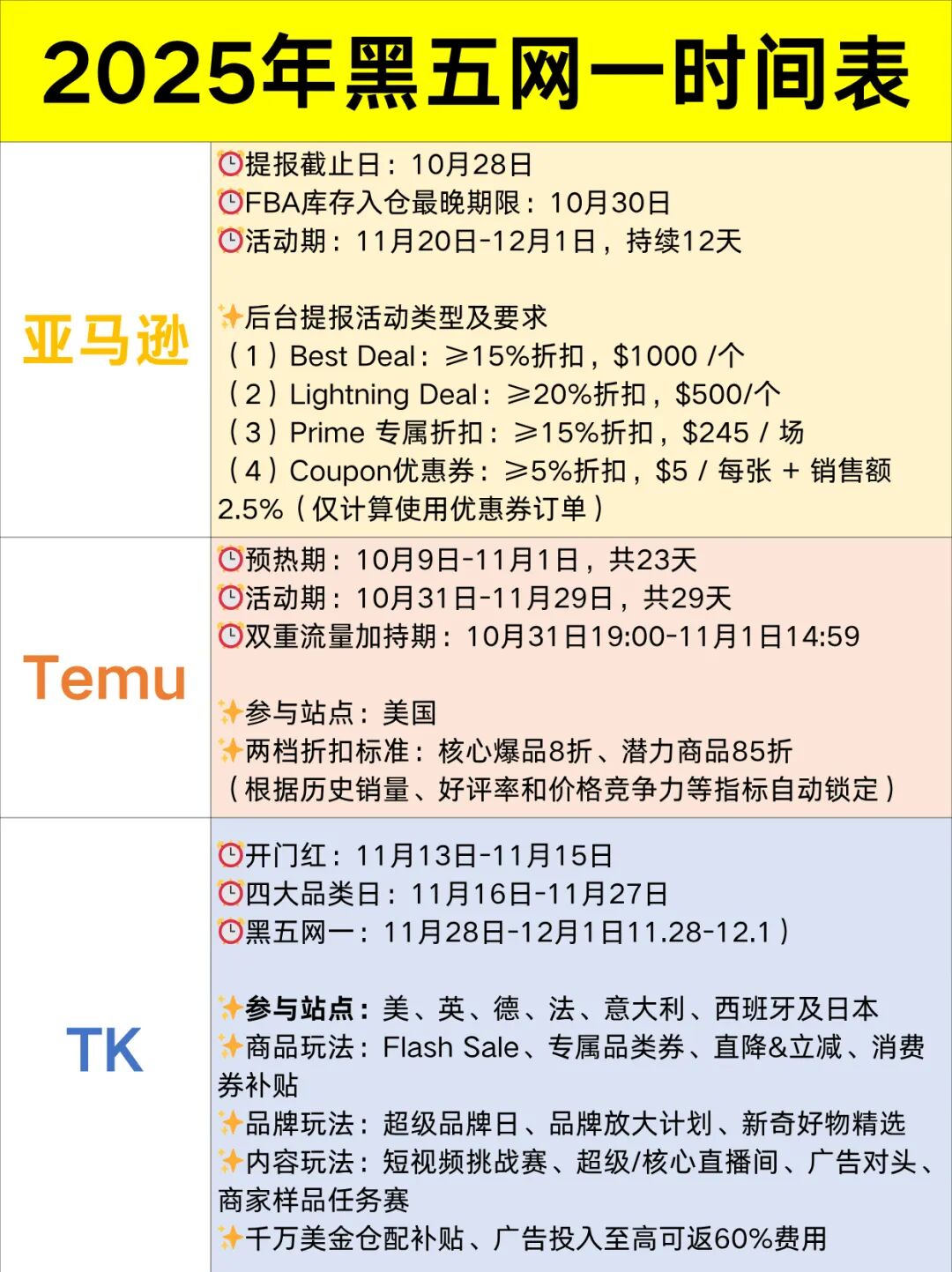 亚马逊/Temu/TikTok Shop三大核心平台的最新玩法整理好啦,附时间线+实操建议,出海人直接抄作业👇