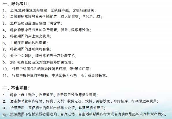 全程含邮轮小费,不用额外给服务人员小费,减少麻烦;