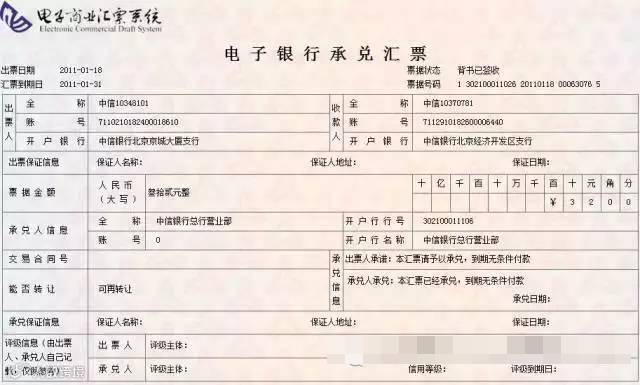 ●票据种类标识为两种:1为银行承兑汇票,2为商业承兑汇票。