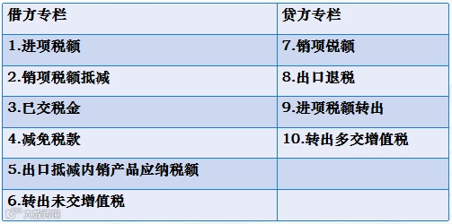 (二)“应交增值税”明细科目 (注:三级专栏不串门)