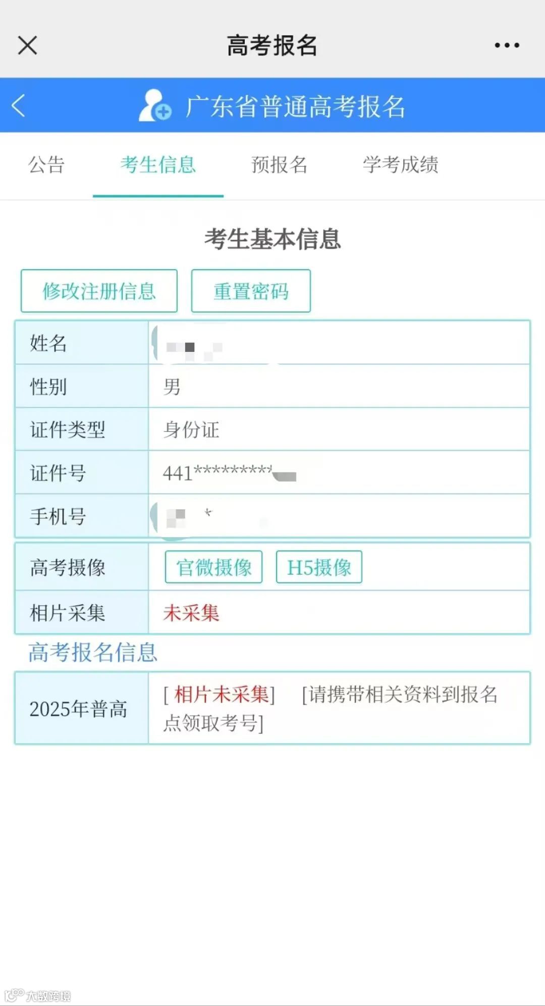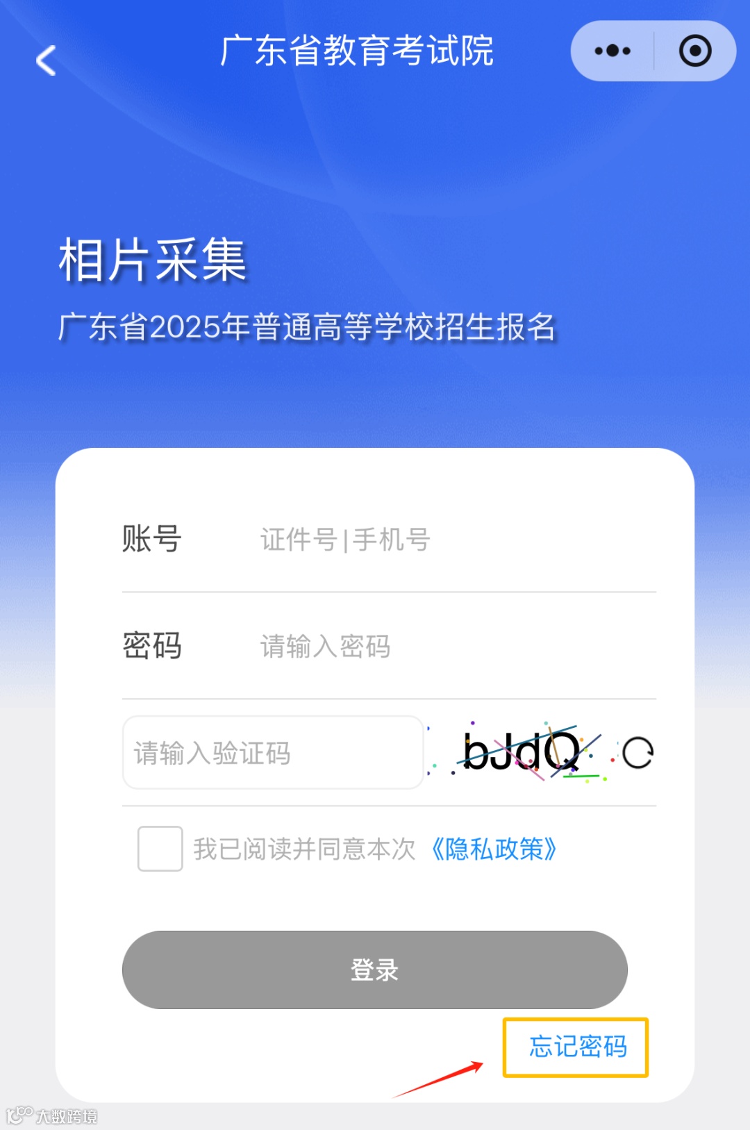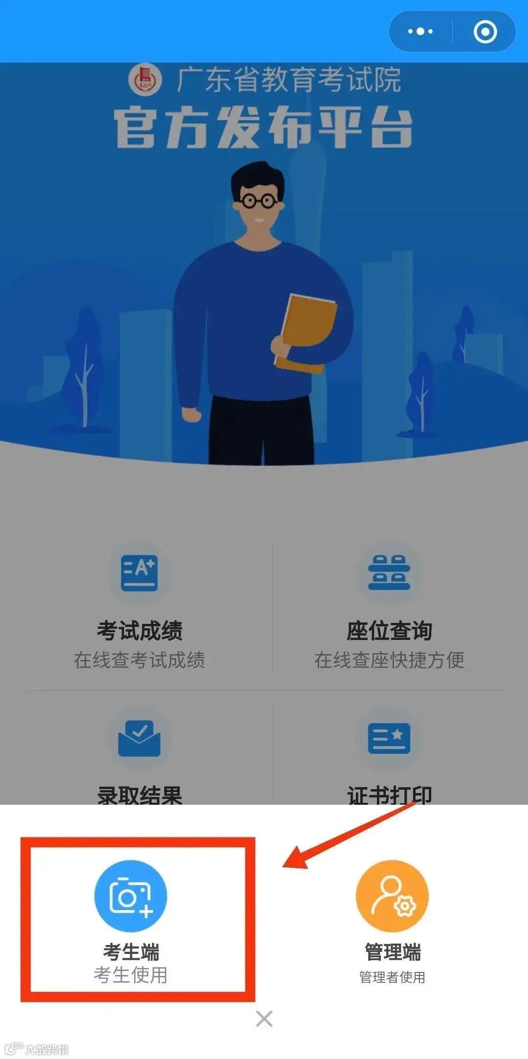 点击进入考试院小程序后,点击【相片采集】-【考生端】-【广东省2026年普通高等学校招生报名】,登陆后即可现拍现传👇