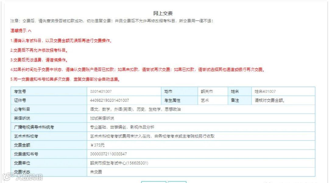 交报名费是预报名非常重要的一步。点击【网上交费】,即可进入交费页面。