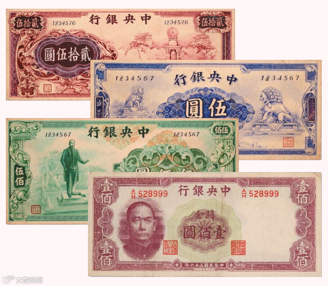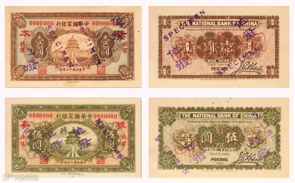 其次是它的完整性。这部纸钞样本不但时间跨度长、内容丰富、规模宏大,而且非常完整。它涵盖了从清光绪三十一年(1905年)到1949年新中国建立前长达45年的中国纸钞发行,反映了20世纪上半叶旧中国纸币兴起、发展、衰亡的历史。