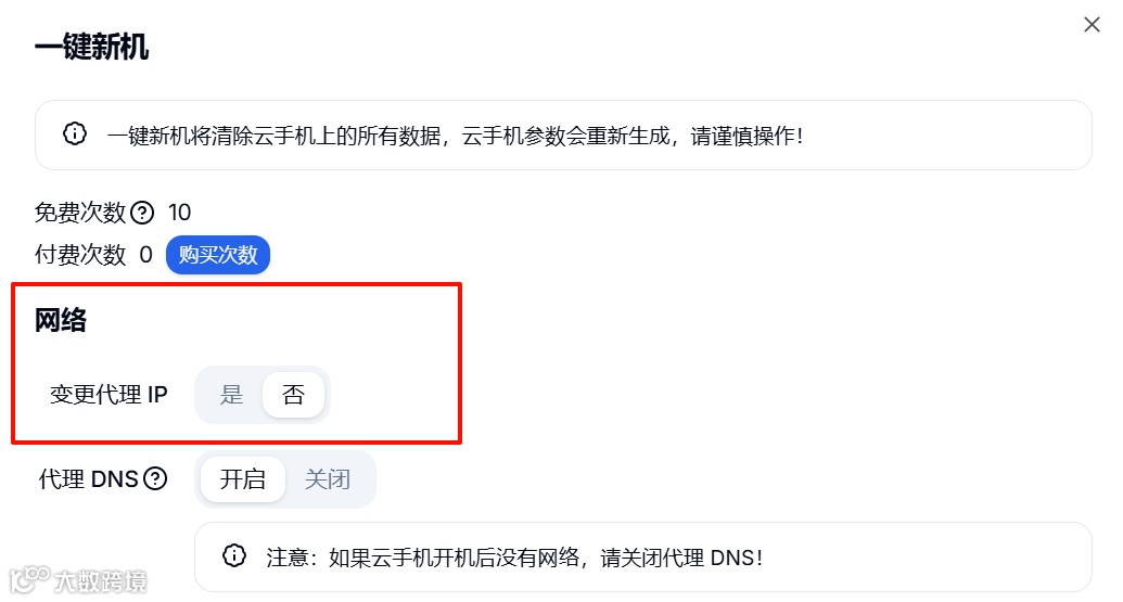 DuoPlus云手机的“一键新机”是指删除当前设备的所有数据,并根据代理IP重新生成设备的所有参数(硬件信息、操作版本等),完全创建出一台全新、独立的云手机。