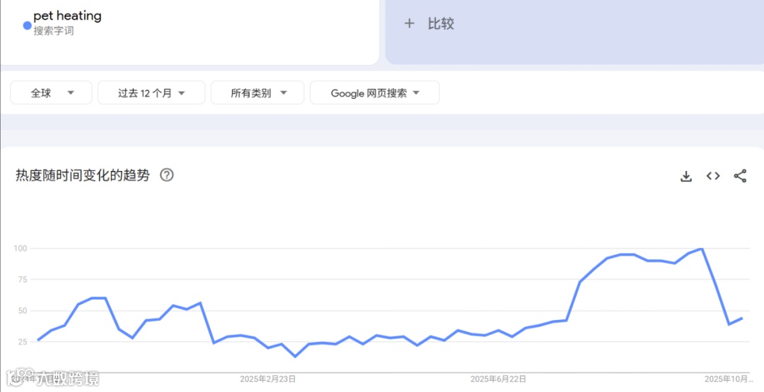 谷歌趋势数据显示,“pet heating”一词在过去12个月均有热度,全球范围内,从今年6月开始,宠物取暖相关话题热度开始大幅度飙升,新西兰、澳大利亚、美国、英国等多国用户十分关注。