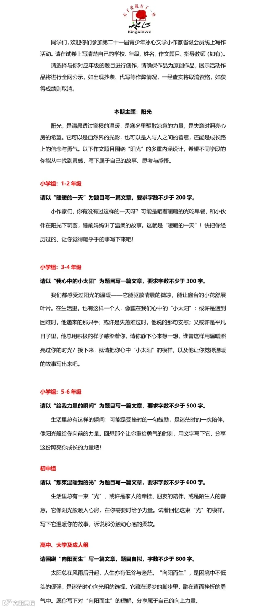 稿纸要求:需使用冰心作文官方规定稿纸进行写作,需自行打印后誊抄并且拍照提交