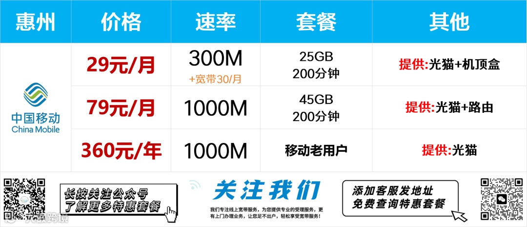 29/月→ 300M宽带(360/年)、25G流量+100分钟通话+光猫+路由器+机顶盒 (适合日常使用的)