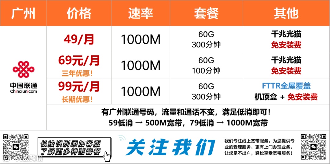 1️⃣广州联通老用户(不改原套餐)国庆限时免安装