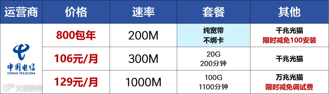 69/月 三年优惠 → 1000M宽带、60G+100分钟+千兆光猫(速率拉满,适合家庭使用,智能家居、家庭NSA 也完全OK)也是直接免安装!