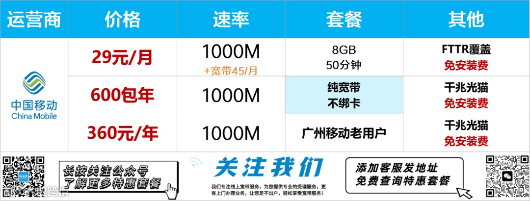 🌟 广州移动亮点:适合对网络需求不高的同学们哦,追剧 刷视频OK啦!