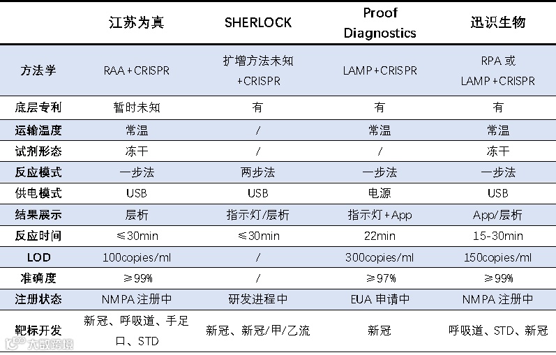 自2016年发现CRISPR反式剪切活性以来,Cas12a、Cas13a等多种效应蛋白被应用于诊断领域[1]。新冠疫情加速了CRISPR检测产业化进程,SHERLOCK、Mammoth、杭州众测、上海伯杰等企业已获得监管授权。国内企业如江苏为真、迅识生物正通过芯片或层析技术整合检测流程,提升操作便捷性与防污染能力[1]。迅识生物基于Cas12b蛋白开发的平台具备宽温反应特性,适用于疾控、海关等多场景应用[1]。
