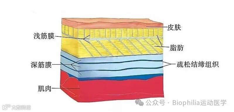 - 核心筋膜:髂胫束(大腿外侧的厚实筋膜带)、阔筋膜(包裹大腿肌肉的深筋膜)