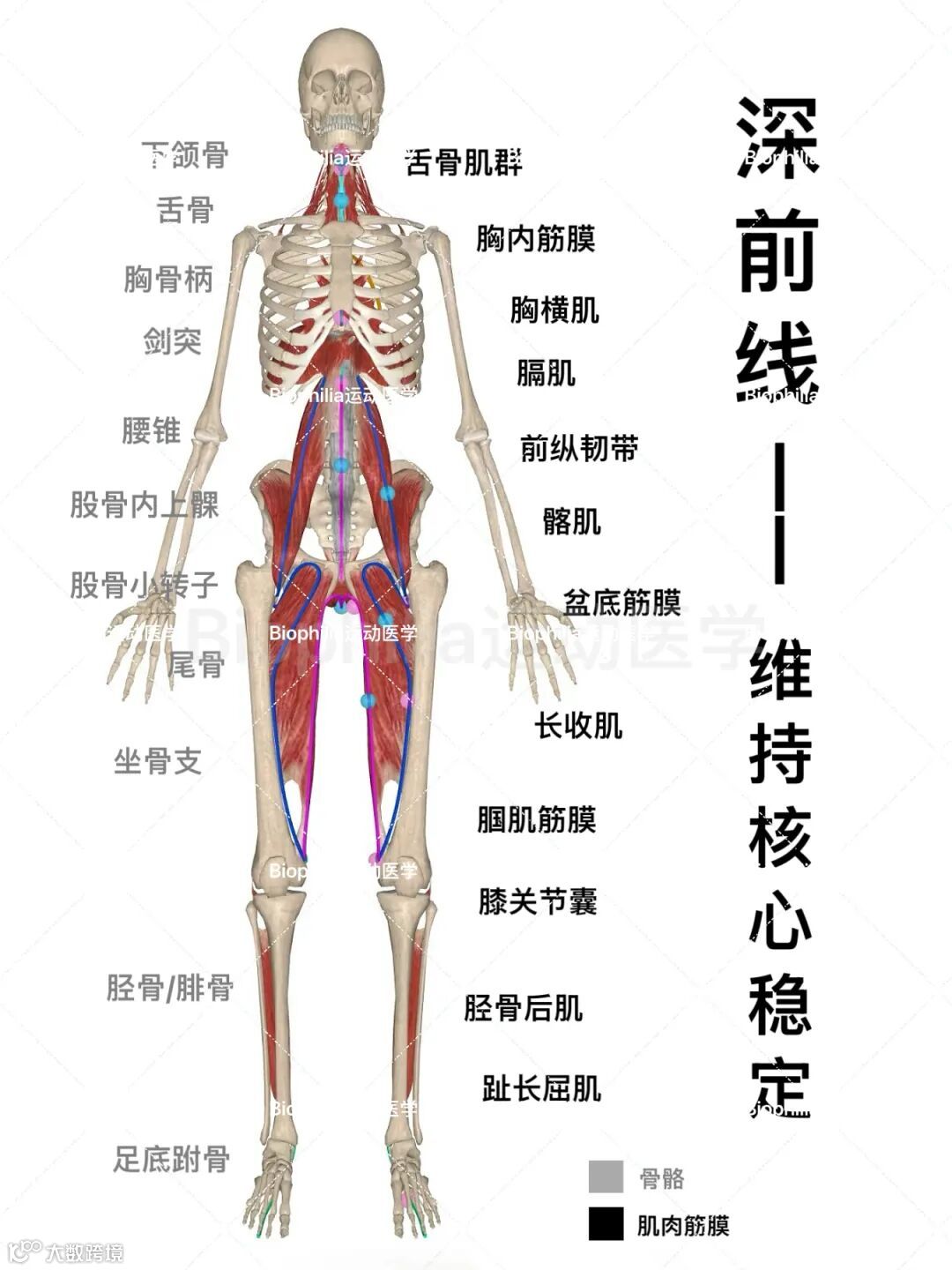 - 2️⃣维持核心稳定性:深前线筋膜像“内部束腰带”一样固定内脏位置,防止跑步、跳跃等运动时器官移位(如避免肾下垂)