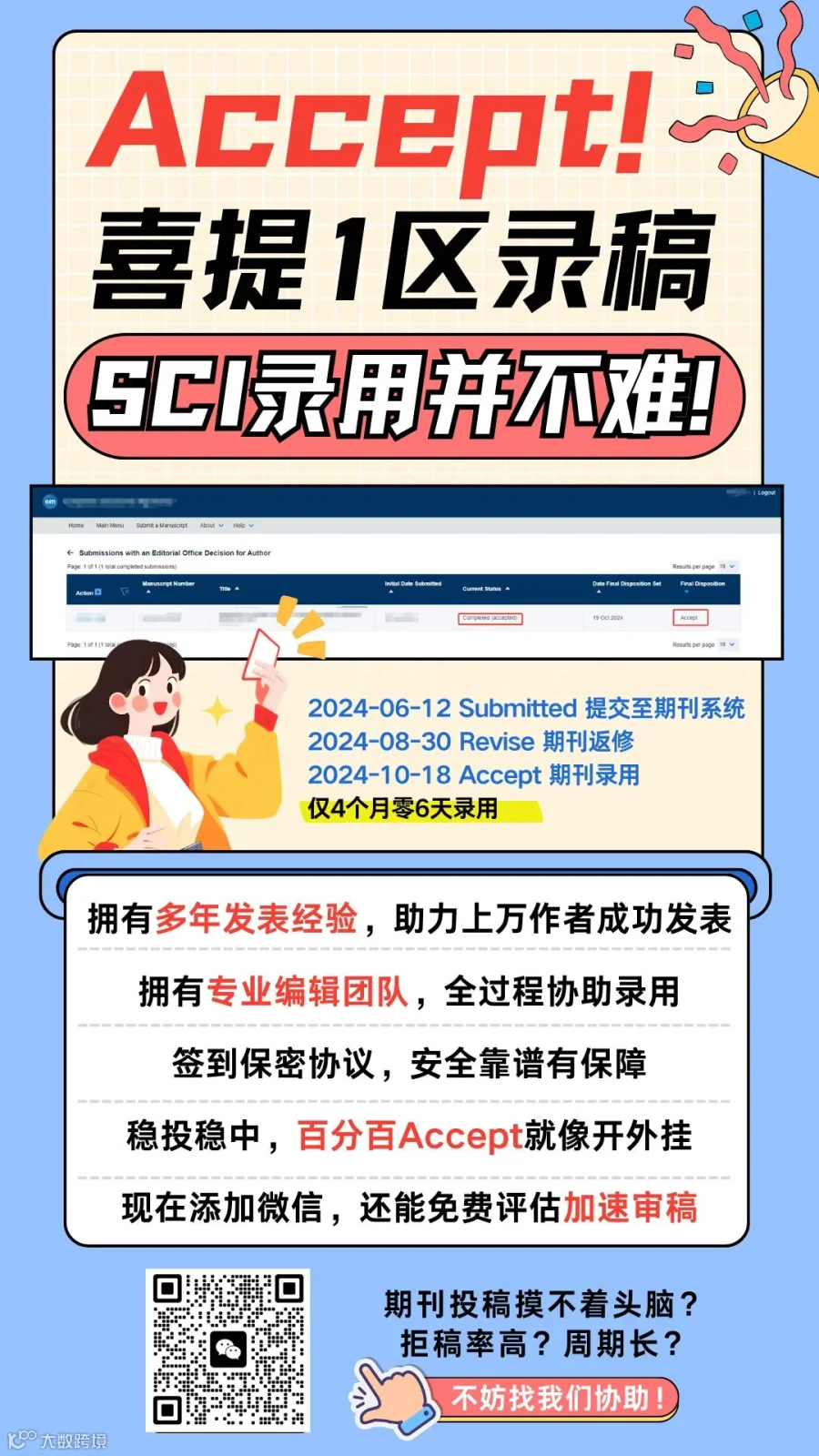 Nature Communications,Advanced Science等高分期刊均有发表成功案例!3月18日最新录用高分捷报!医学1区:Cancer Communications 20.1分