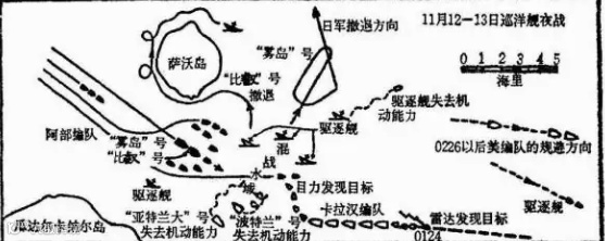 这是一场如同陆地上白刃肉搏般的近战,历时仅二十四分钟,美军损失惨重,2艘巡洋舰和4艘驱逐舰被击沉,2艘巡洋舰和2艘驱逐舰击伤,包括卡拉汉和斯科特两位将军在内的近千人阵亡。