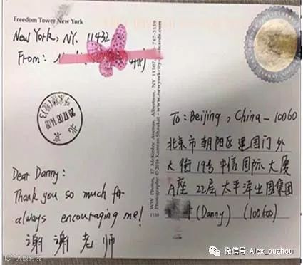 帮助他成功去美国上学的NY小姐,在即将圣诞之际还给我寄来了贺卡,感觉很温暖,他还记得我