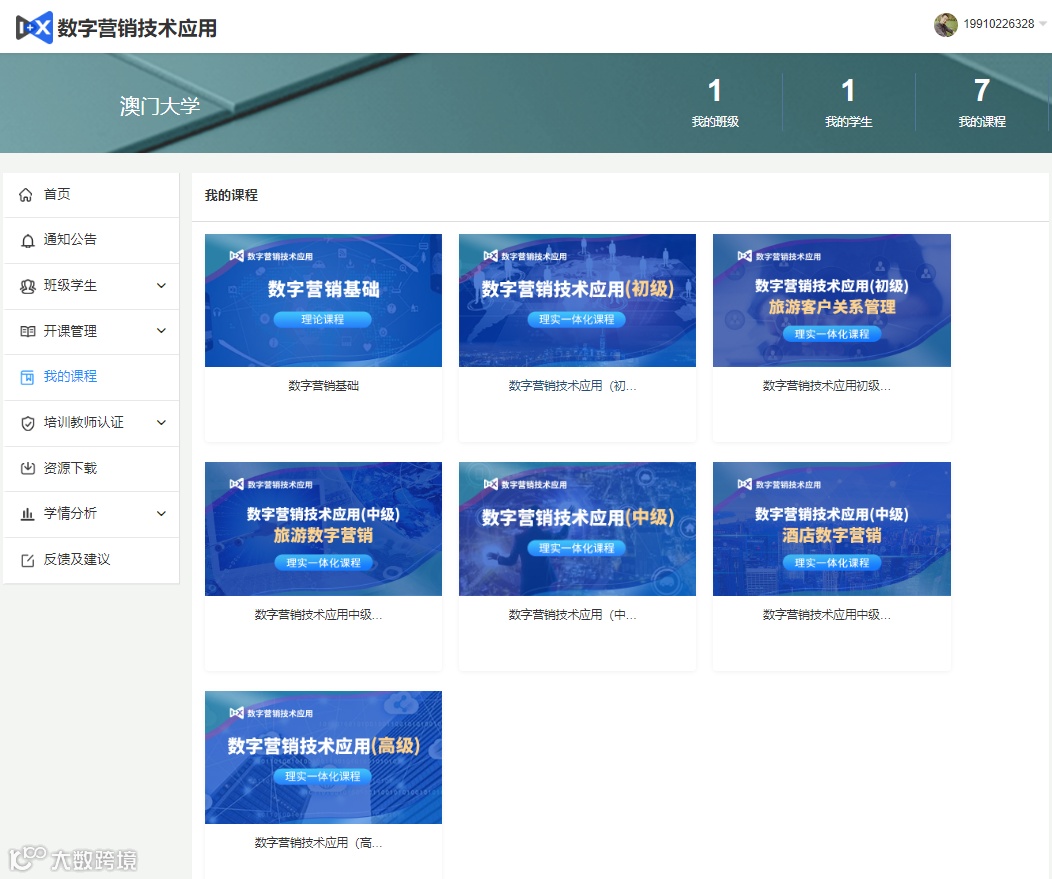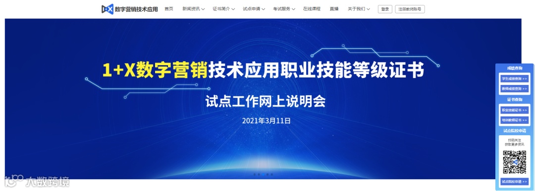 为1+X数字营销技术应用职业技能等级证书试点的持续推进,中教畅享开展了云课程栏目,云课程平台配备了丰富的多媒体资源、书证融通方案、培训指导方案、模拟试题库、技能实训平台等资源,学习者可以结合平台资源进行自学、授课等。