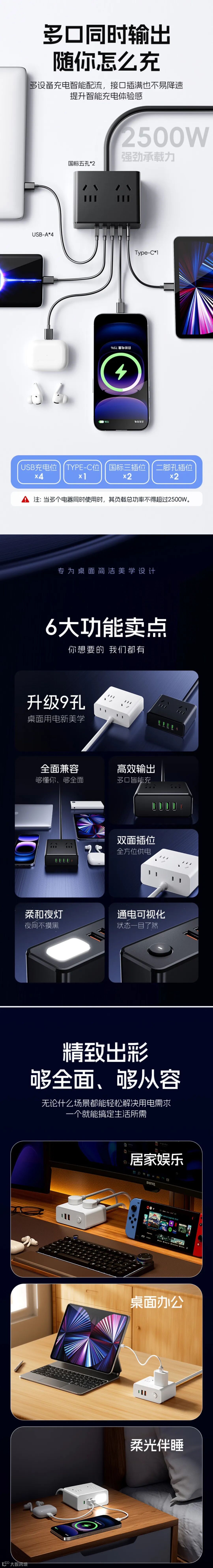 你是不是也这样,手机、平板、电脑、台灯、加湿器……插头永远在抢同一个插座,线缠成一团乱麻,每天拔插N次心态爆炸!