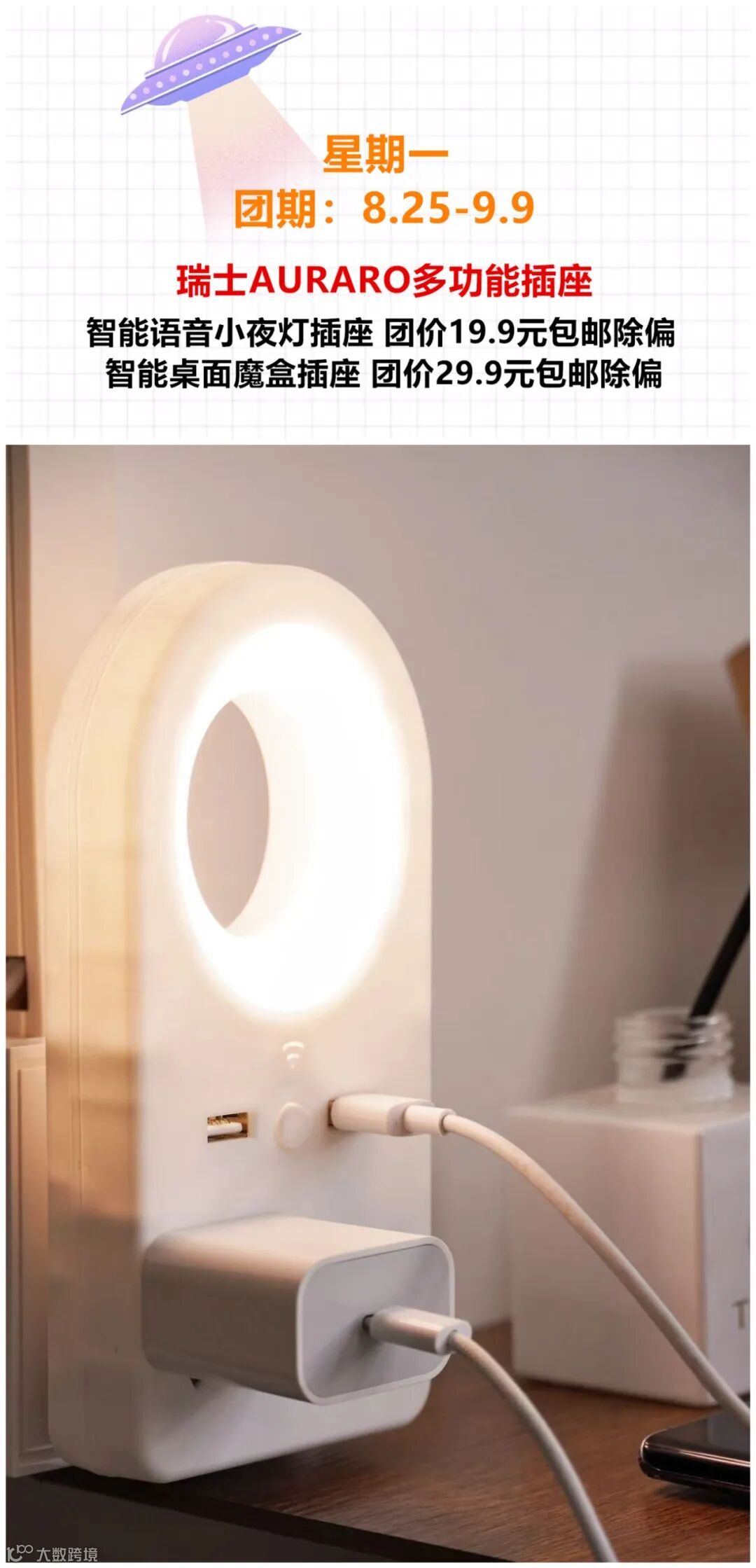 别急,今天给大家推荐两款「插座终结者」,AURARO智能语音小夜灯插座 & 智能桌面魔盒插座!C口、USB口、两孔、五孔一应俱全,充电口多到你都用不完!花小钱办大事,宅家幸福感直接拉满!全部通过3C认证,使用更安全放心~