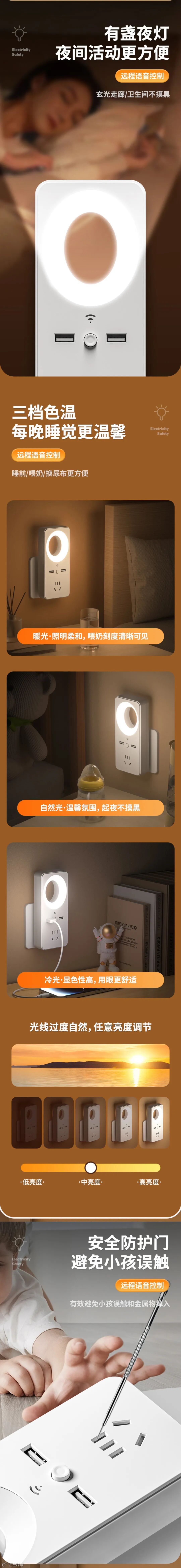AURARO智能语音小夜灯插座,是插座,是夜灯,更是你的私人床头管家!含国标插孔双孔*2、三孔*2 、USB直插孔*2,三角插直接上墙,小巧不占地。尤其适合怕黑党、哺乳妈妈、起夜党,一句话亮灯,安全感爆棚!