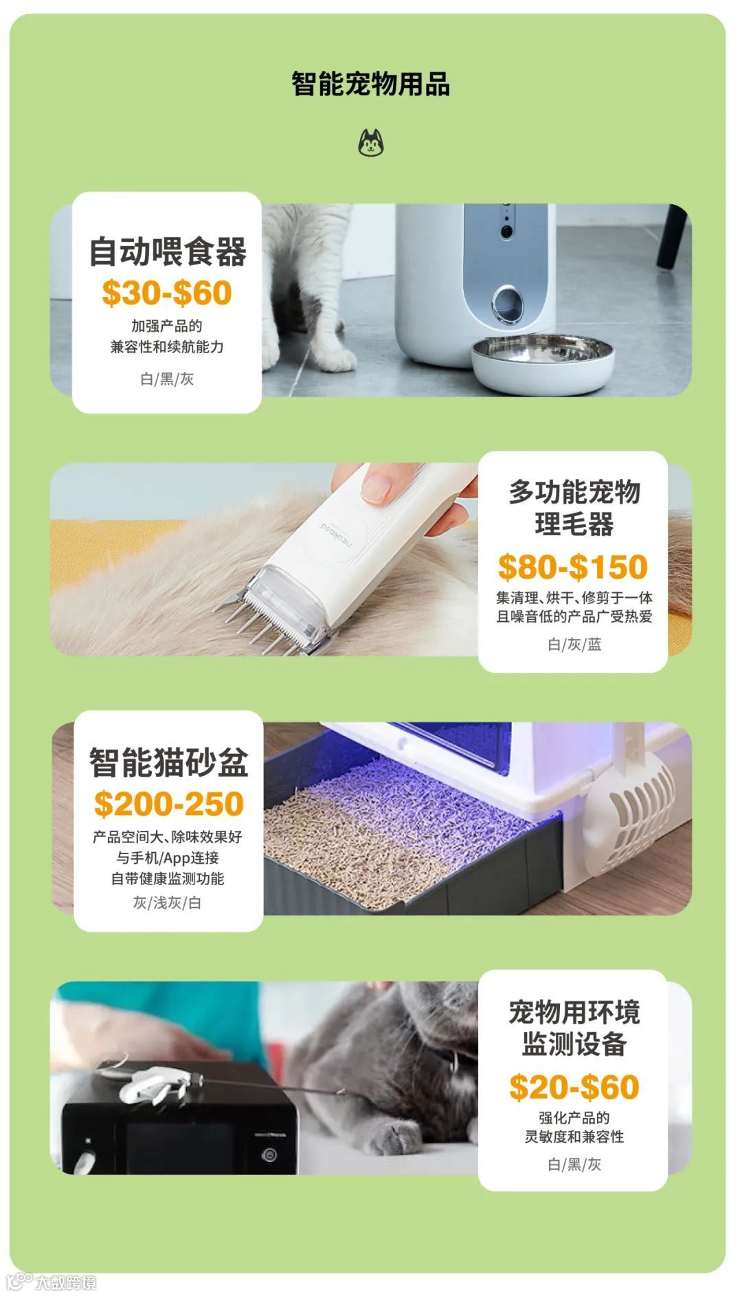 品牌在产品设计上可围绕材料升级、智能化功能拓展及可持续性方向优化,以提升用户体验,增强市场竞争力。深入分析这些趋势,不仅有助于品牌精准选品,还能优化供应链布局,提升市场竞争力,在全球宠物经济中抢占先机。