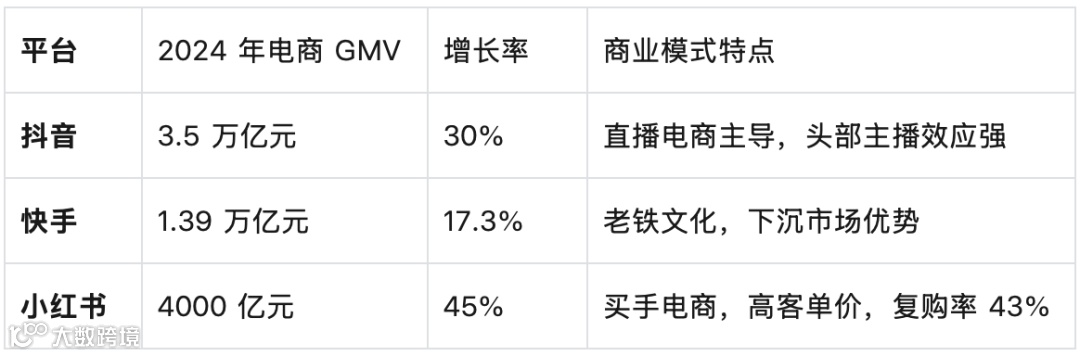 电商 GMV 的悬殊对比展现了商业化能力的差异: