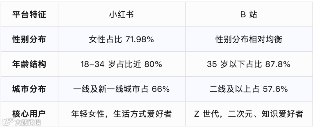 用户画像的对比揭示了平台定位的差异:
